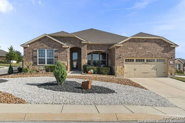Set on a beautifully xeriscaped corner lot in the desirable Hill Country Retreat by Del Webb 55+ community, this 3 bedroom, 2 bathroom home offers a perfect blend of style, comfort, and low-maintenance living. The inviting curb appeal features a covered front porch that leads into a formal dining or living area and a dedicated office space. An open layout connects the spacious kitchen-complete with stainless steel appliances, an island with seating, abundant cabinetry, generous counter space, and a breakfast nook-to the living room, ideal for entertaining or relaxed daily living. A versatile flex space off the main area provides room for hobbies or reading. The primary suite includes a walk-in closet and a private en suite bathroom with a large dual vanity, while additional bedrooms offer comfort and flexibility for guests. A large enclosed covered patio provides a tranquil setting for enjoying morning coffee or evening breezes. Residents of Hill Country Retreat enjoy access to exceptional amenities, including pools, walking trails, fitness facilities, and social activities, all within minutes of Alamo Ranch shopping and dining.